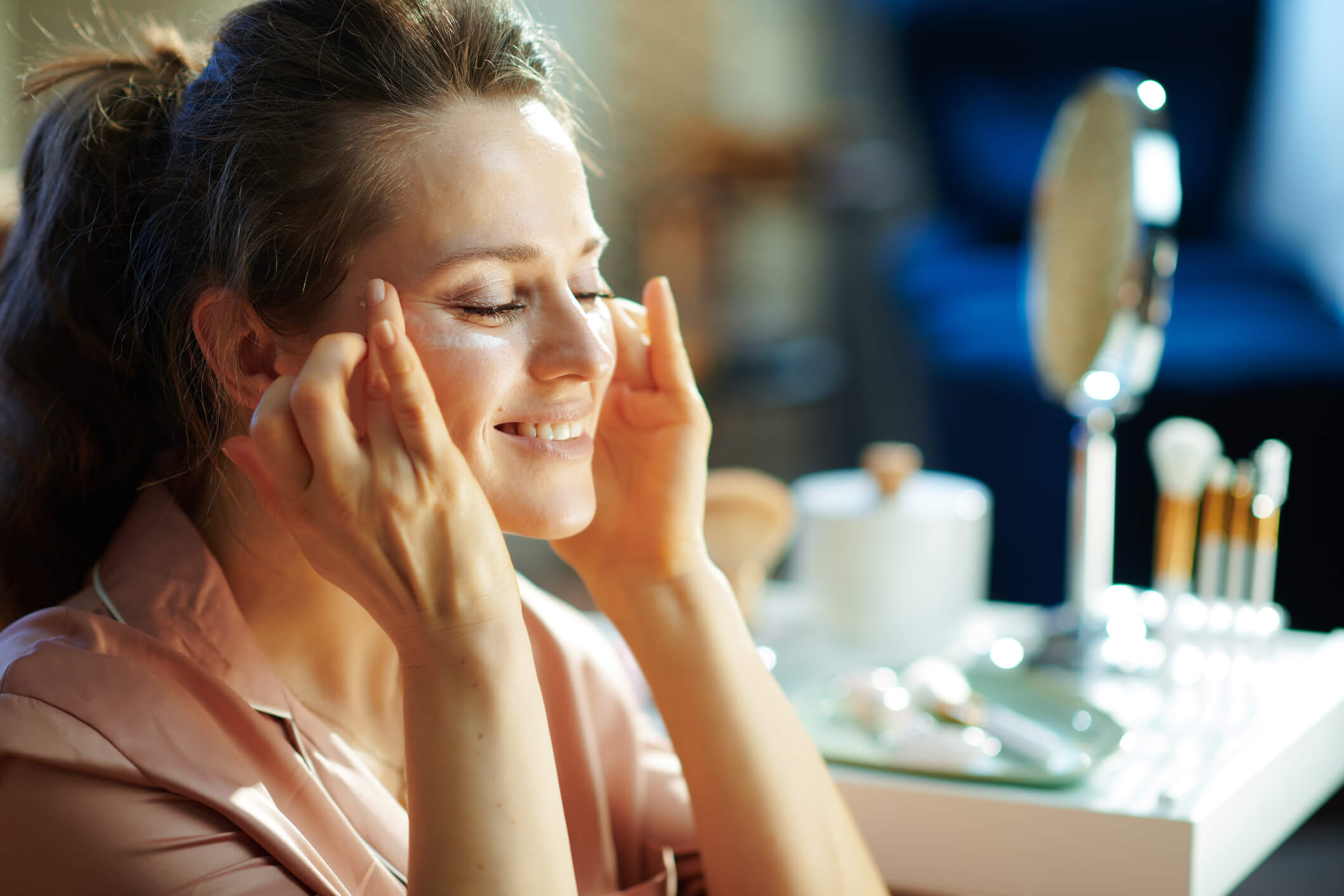 Ein häufiger Fehler in der täglichen Pflegeroutine: Gesichtscreme wird bis direkt unter die Augen aufgetragen.